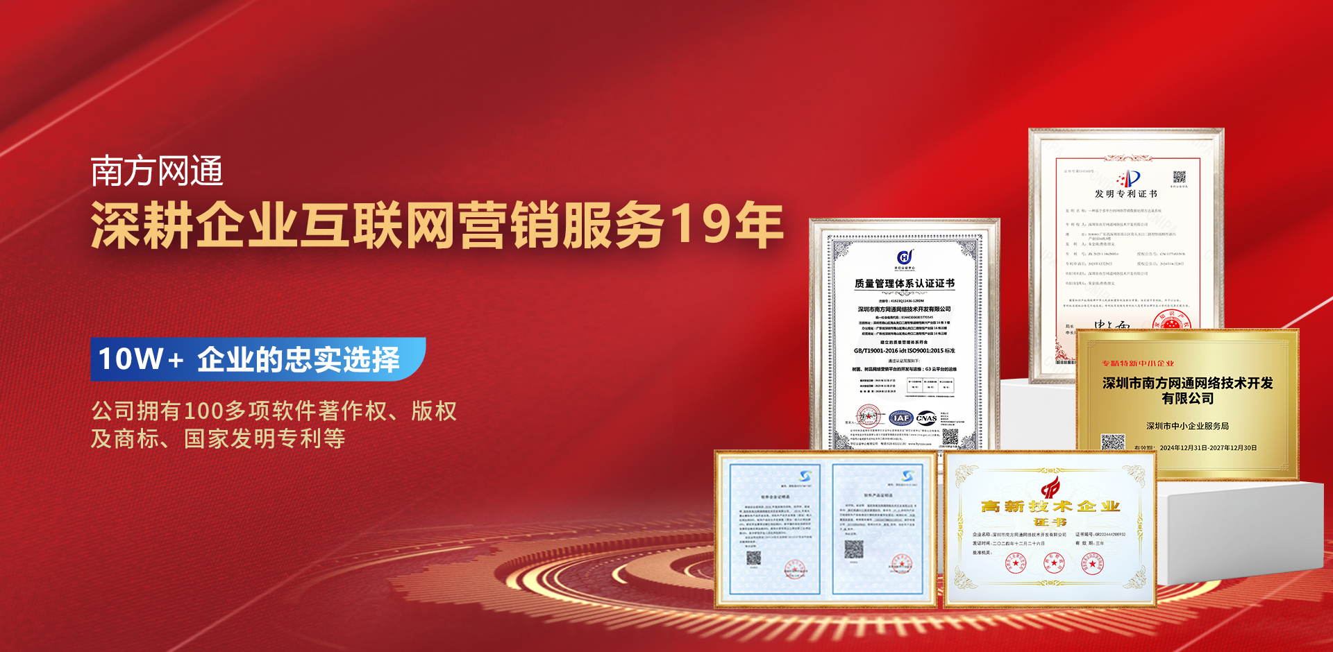 發(fā)展至今,南方網(wǎng)通集團(tuán)已成功為50多家上市公司、800多個(gè)品牌逐步發(fā)展成?,10萬(wàn)+企業(yè)解決網(wǎng)絡(luò)營(yíng)銷推廣難題。是中國(guó)上市公司、中小企業(yè)?致信賴的專業(yè)網(wǎng)絡(luò)營(yíng)銷服務(wù)提供商,也是引領(lǐng)互聯(lián)網(wǎng)+企業(yè)轉(zhuǎn)型的專業(yè)全網(wǎng)營(yíng)銷互聯(lián)網(wǎng)公司。